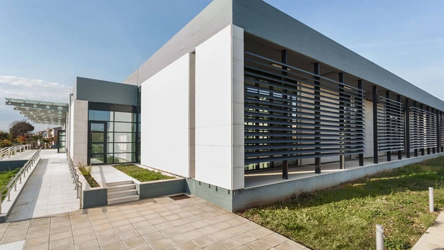 - SMARTIA M5600 is an architectural shading system featuring elliptical aluminium louvers, designed to provide effective solar control while allowing natural light into the building. The system combines a robust supporting structure with a wide range of louver options, offering flexible solutions to meet diverse architectural and construction requirements.