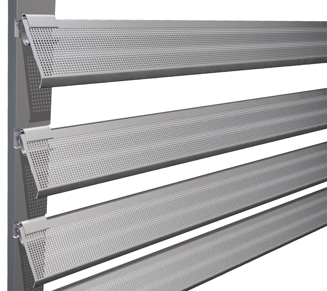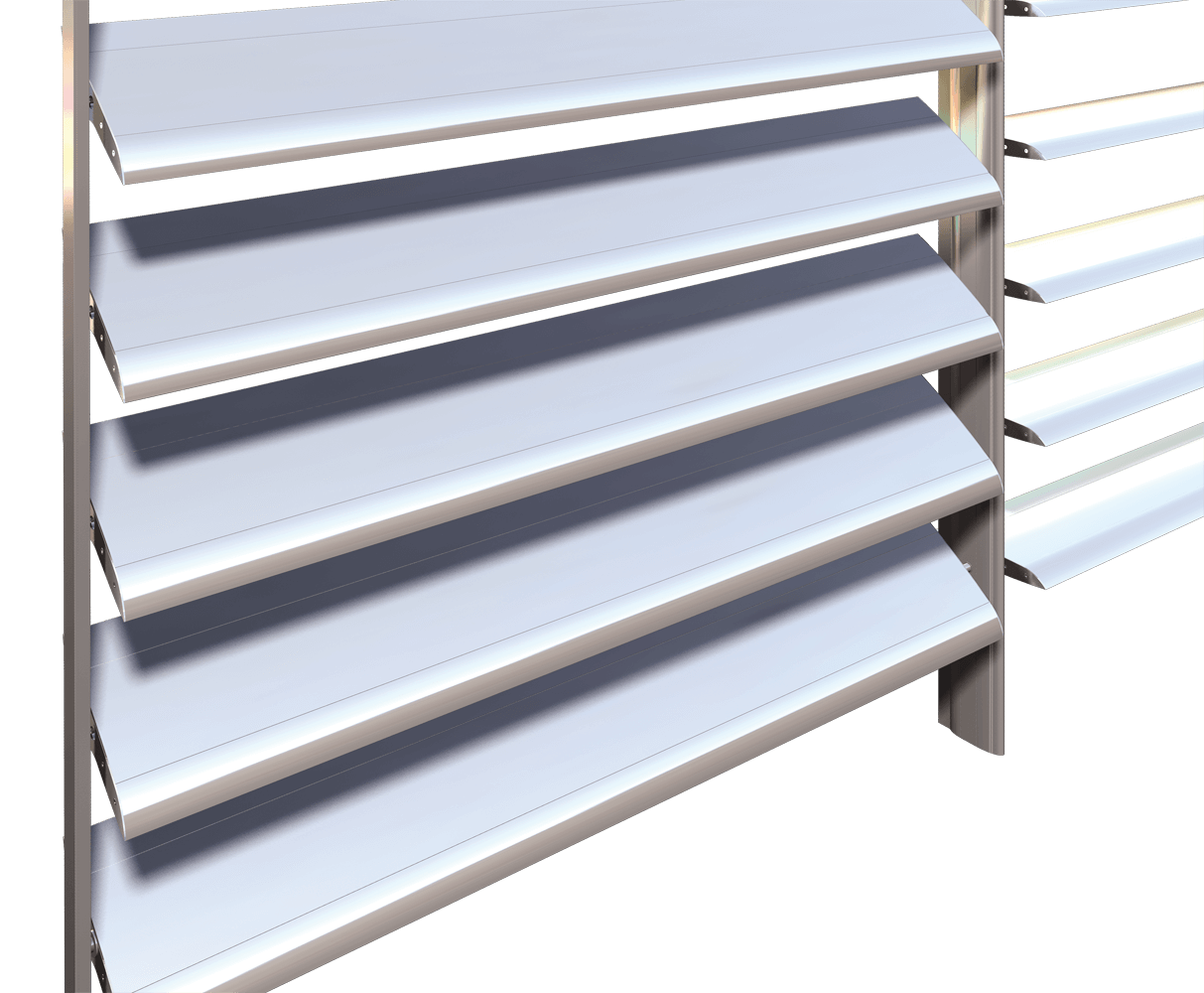 - Wide range of solutions with louvers from 100mm to 800mm, single and composite, flat and hollow ones, fixed and adjustable